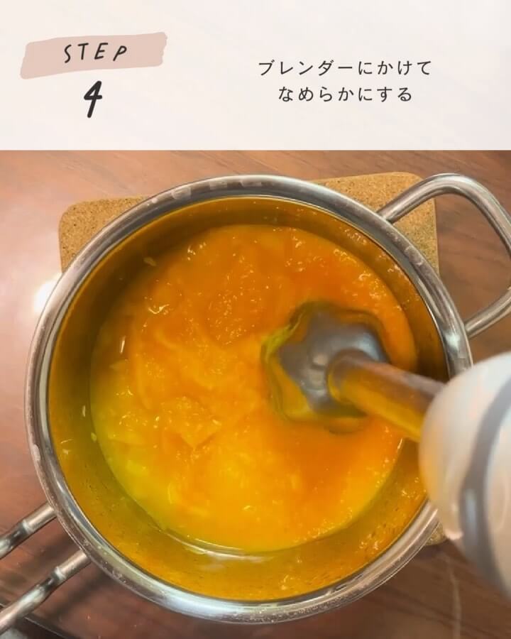 粗熱をとり、ブレンダーにかけてなめらかにする。