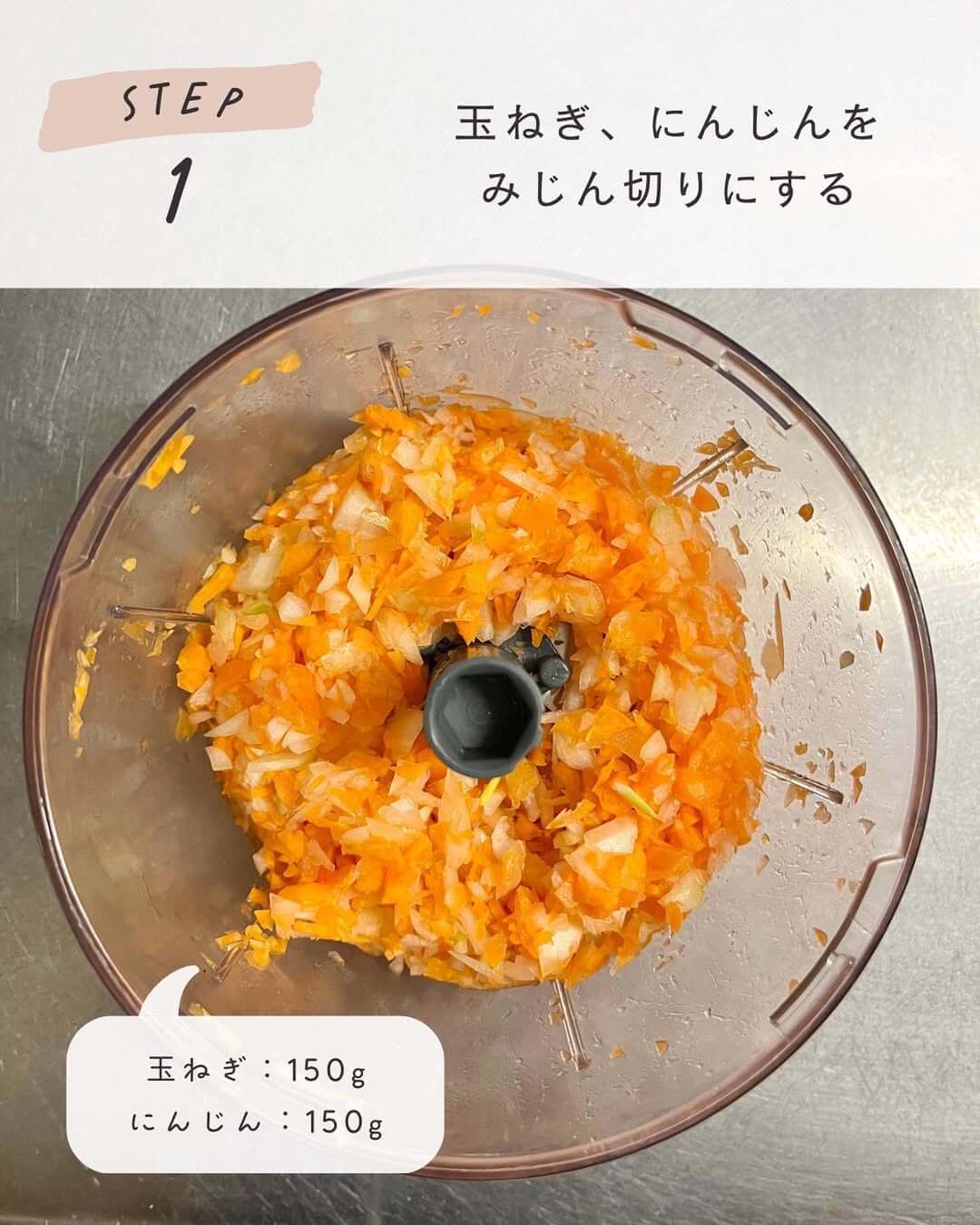 玉ねぎとにんじんをみじん切りにします。
