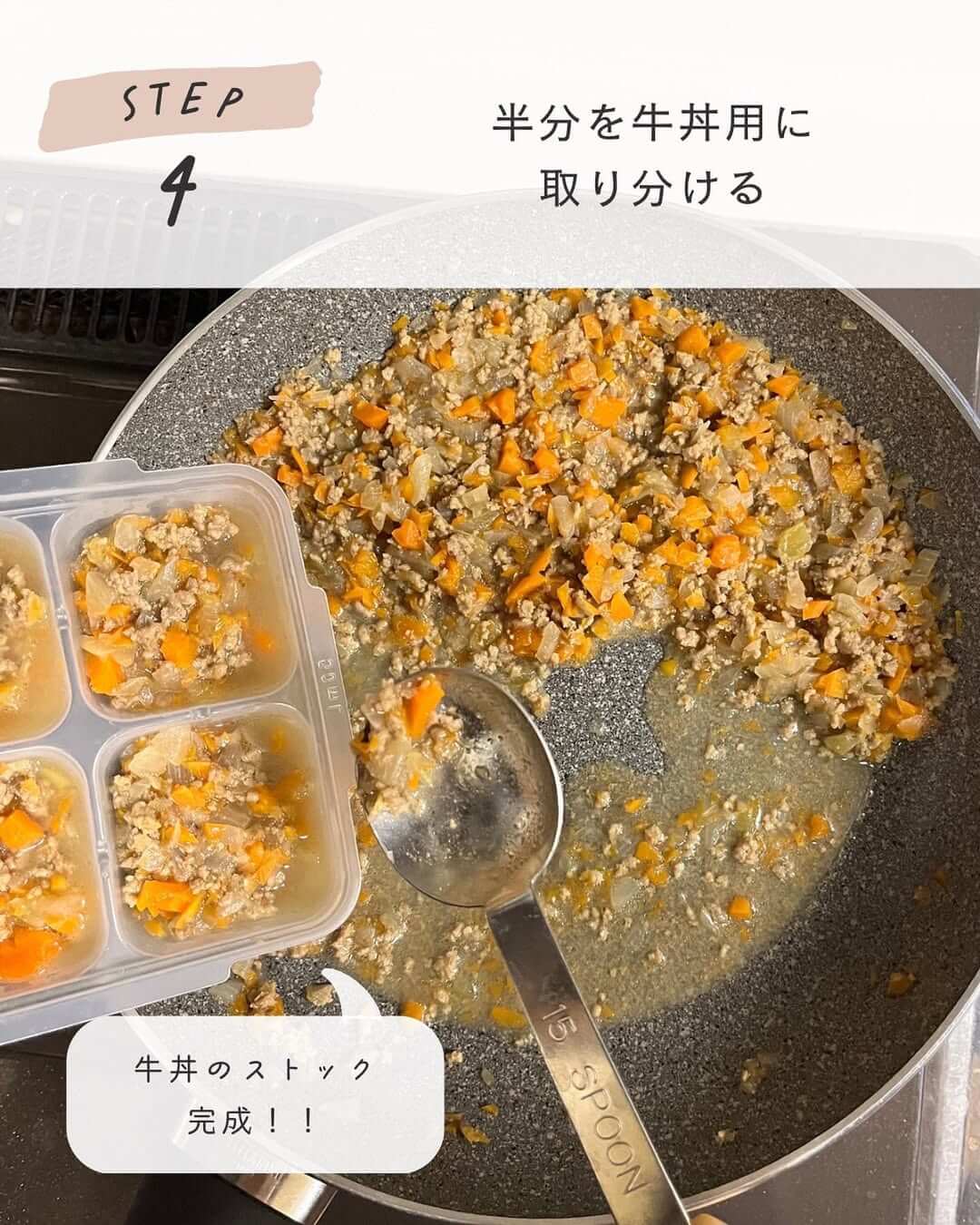 半分はやさしい味の牛丼に、もう半分はミートソースとして活用!