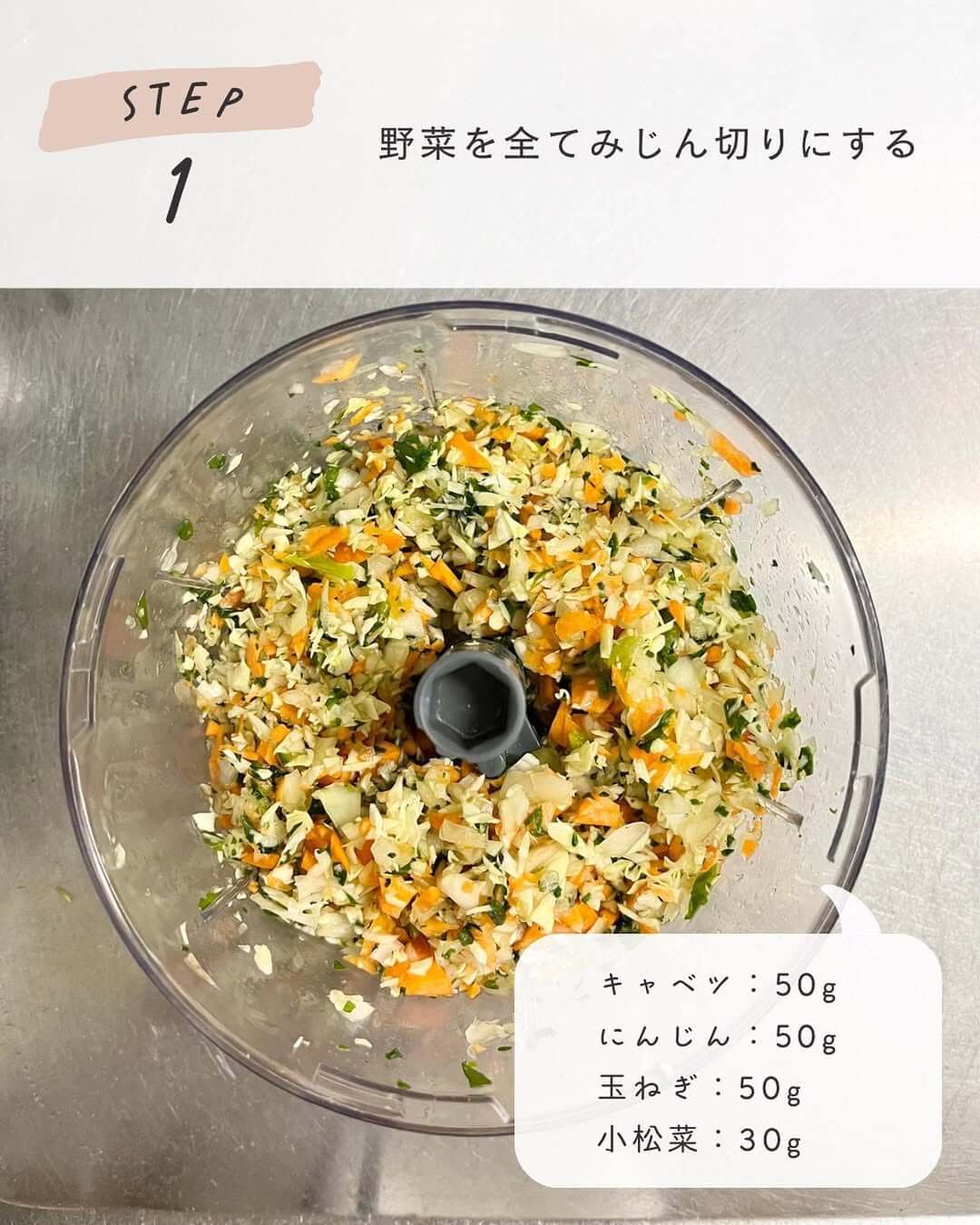 キャベツ・玉ねぎ・にんじん・小松菜をすべてみじん切りにする。